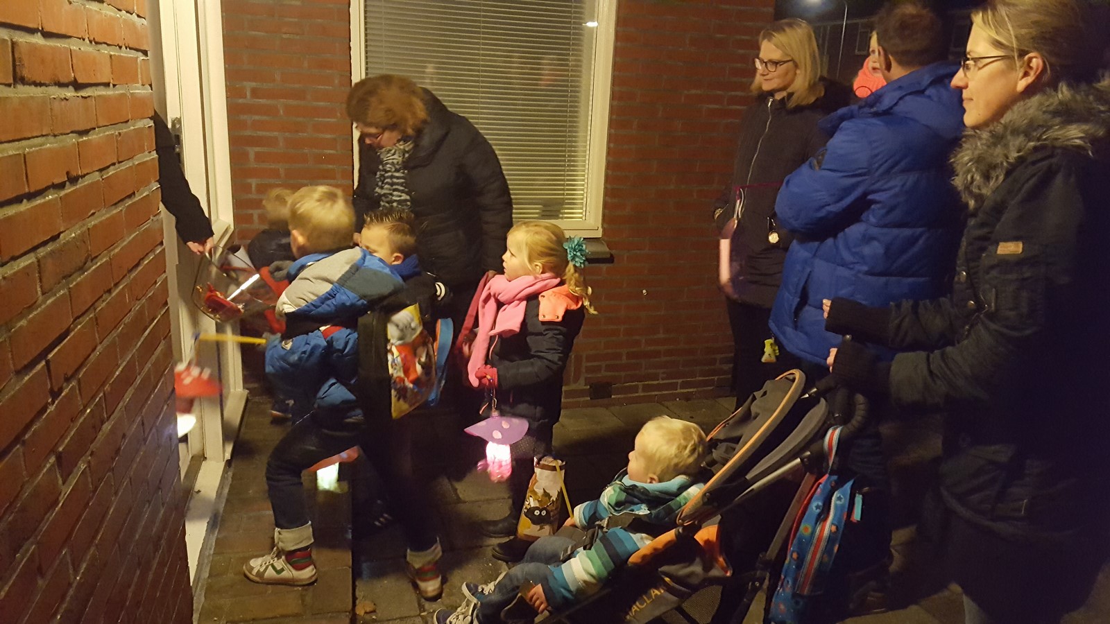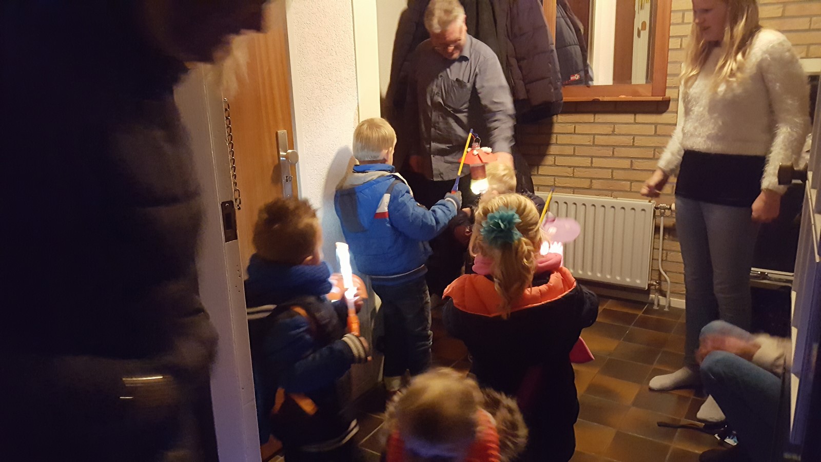 En toen werd het steeds donkerder en donkerder. Eerst nog op tijd een hapje eten, want papa was eerder thuis van zijn werk. Om half 6 vertrokken we richting opa en oma Missche en ook bij Lida zijn we nog eventjes aan geweest. Joost snapte er niet veel van, maar vond het wel leuk! Maarten nam hem bij de hand en zong wel een liedje.