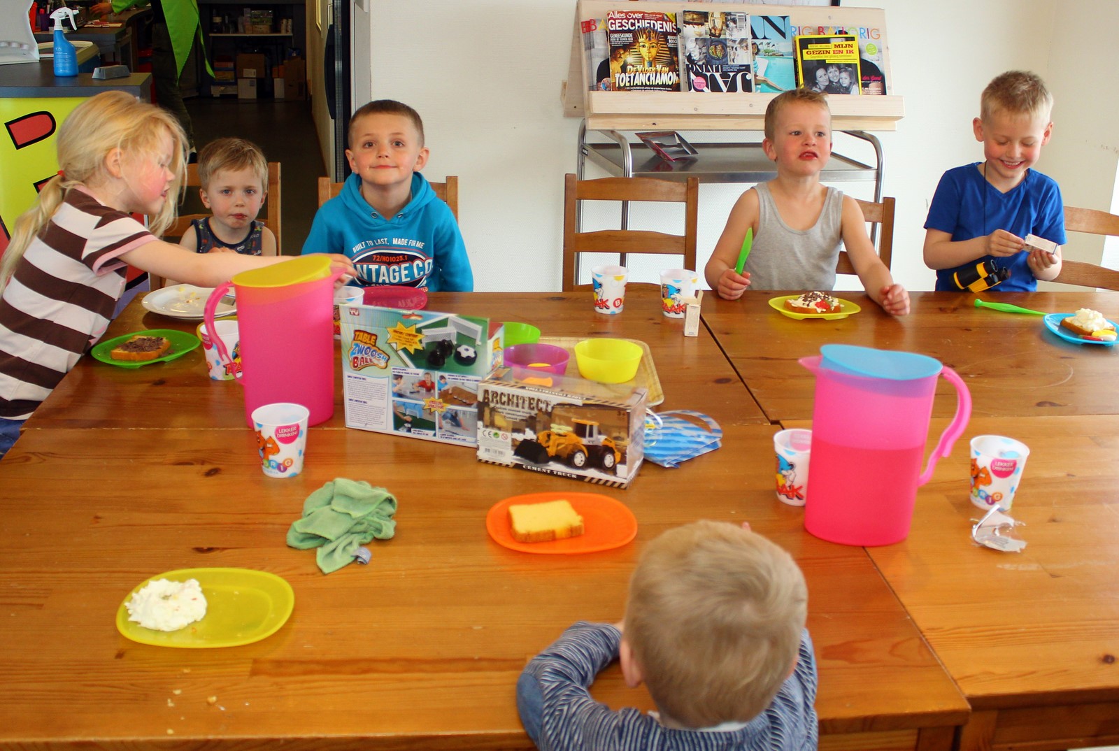 Voordat ze hun cakejes gingen versieren, konden ze zich eerst even helemaal uitleven. Maarten heeft leuke cadeautjes gekregen, waaronder een verrekijker waar hij helemaal blij mee was. Hij had dat namelijk zelf in de cadeaukrat gedaan, die hij bij de Intertoys had samengesteld.